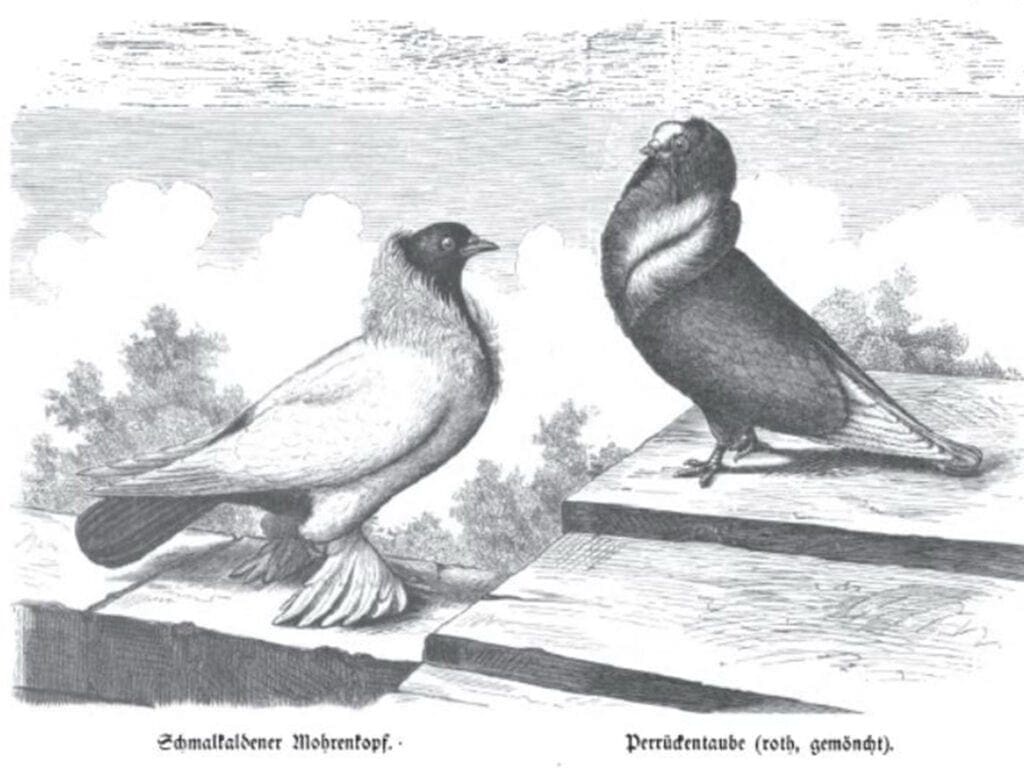 Die Gruppe 1 umfasste die Feldtauben. Darin waren alle Feldtauben, Farbentauben, Trommeltauben sowie Locken- und Gimpeltauben zusammengefasst. Gruppe 2 der Einteilung bildeten die Tümmlertauben in allen Varianten und Spielarten. Die Nonnen wurden dabei besonders genannt und erwähnt. Gruppe 3 bildeten die Perückentauben sowie Schmalkaldener Mohrenköpfe.