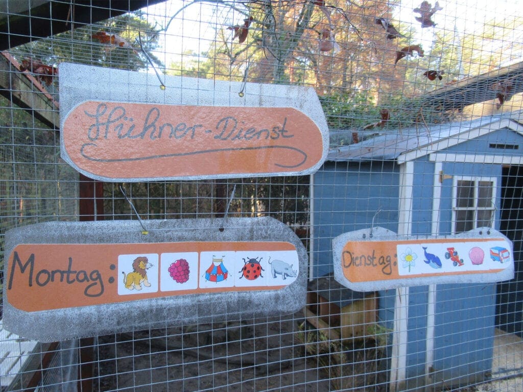 Füttern, Stallreinigung, Eier abnehmen – all dies gehört dazu. Klare Abläufe und Routine sorgen bei den Kindern für Spaß an der Beschäftigung. Als Belohnung sorgen Streicheleinheiten für die Tiere auf beiden Seiten für angenehme Entspannung.