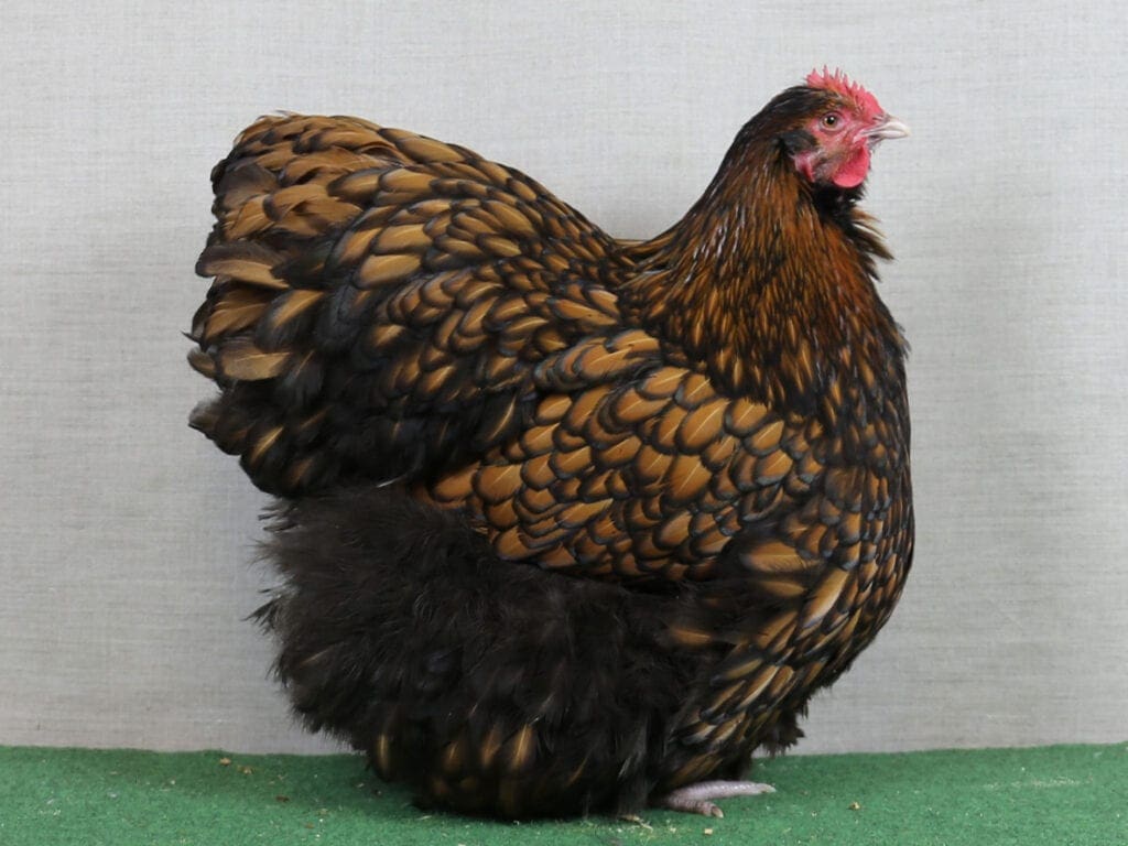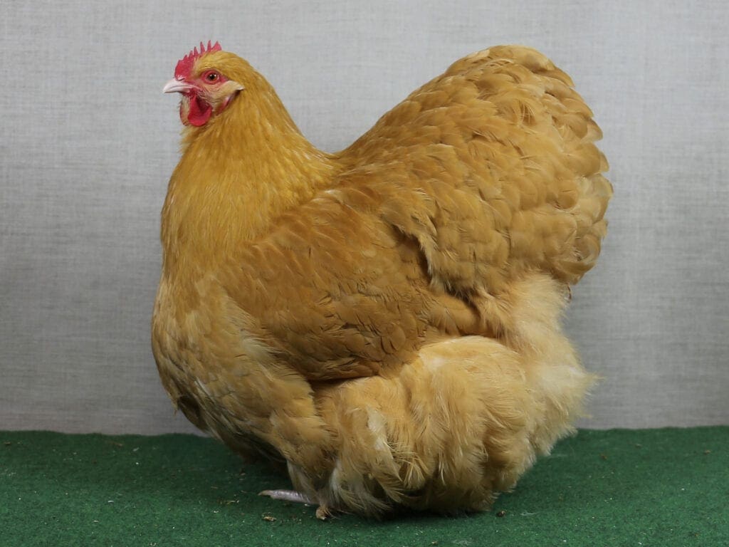Niemals dürfen Orpington klein oder zierlich wirken. Die weiche und füllige Feder verleiht den Tieren eine kräftige und wuchtige Erscheinung. In der Gesamtheit aus Befiederung und Form entsteht die Kontur eines Würfels.