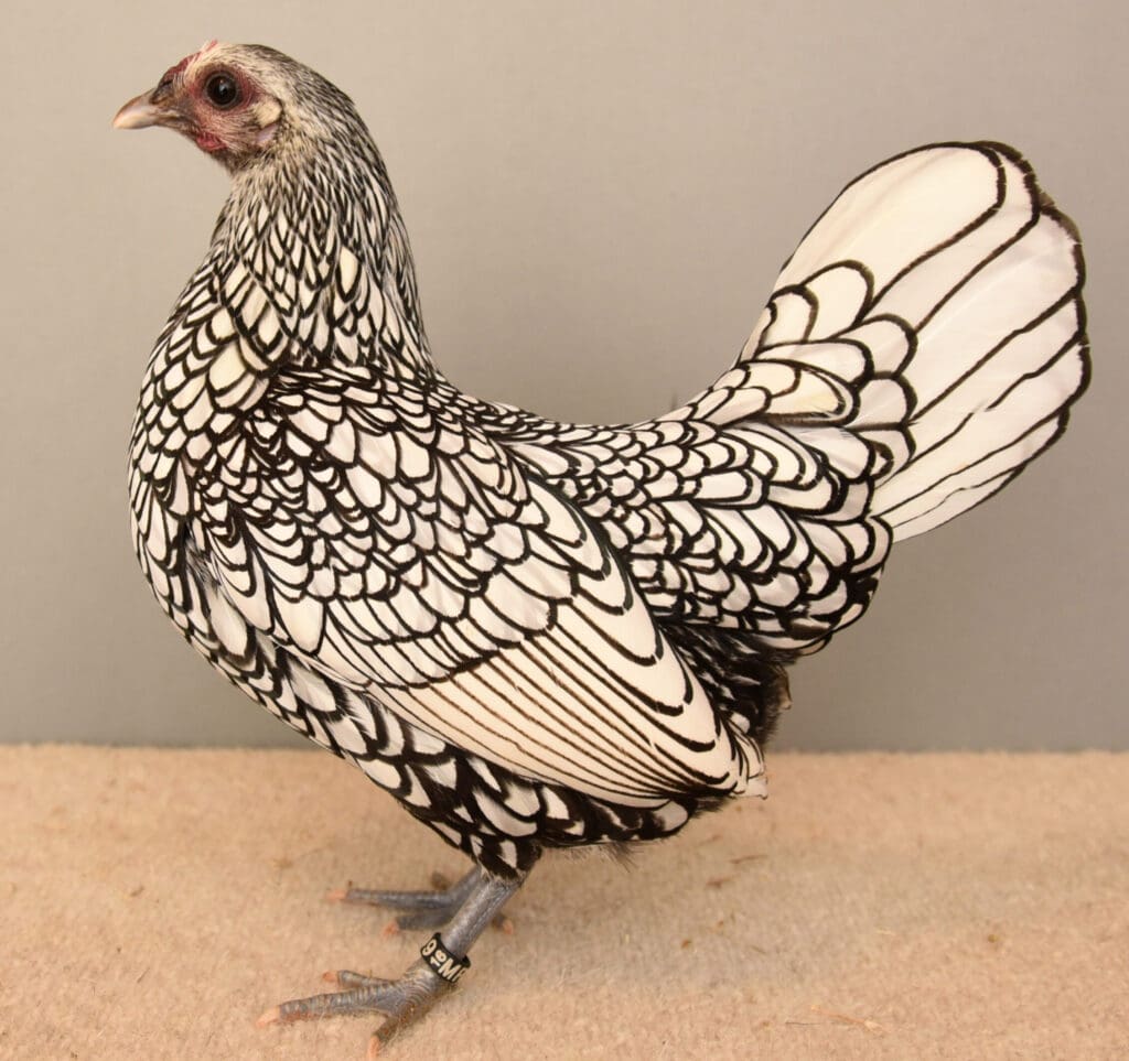 Aufgrund der Hennenfiedrigkeit der Hähne können die Sebright auch noch später im Jahr gebrütet und erfolgreich ausgestellt werden.